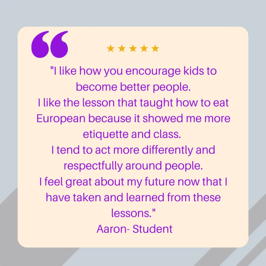 Etiquette - Engaging, Social, Manners, Appearance, caring, decorum & politeness